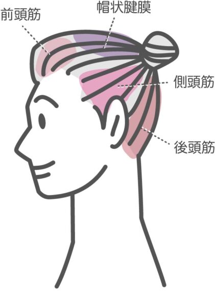 頭皮の下には、側頭筋・帽状腱膜・前頭筋・後頭筋といった筋肉や腱が存在しており、これらが緊張すると頭部全体が硬くなってしまうのです。