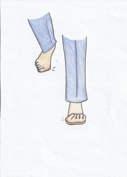 本来は足裏全体で体重を受けるところが、バランスが崩れ、親指で地面を蹴るクセが強くなっていきます。