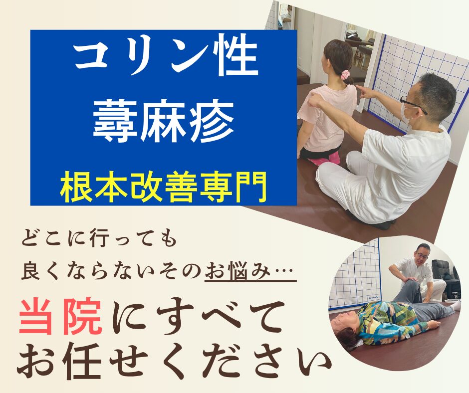 仕事中や緊張したときに突然、首や背中にピリピリとしたかゆみと発疹が出るようになり、皮膚科でコリン性蕁麻疹と診断されました。薬では少し落ち着くものの、根本的には変わらず、季節の変わり目やストレスで悪化してしまう状態でした。