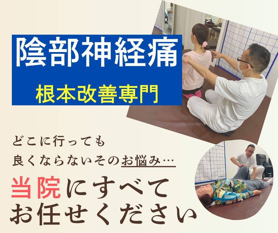 数か月前から、座ると肛門の奥がズキズキ痛むようになり、整形外科や婦人科を何件か受診しましたが、異常は見つかりませんでした。ネットで調べて「陰部神経痛」という言葉を知り、すみれ鍼灸整骨院に来院しました。